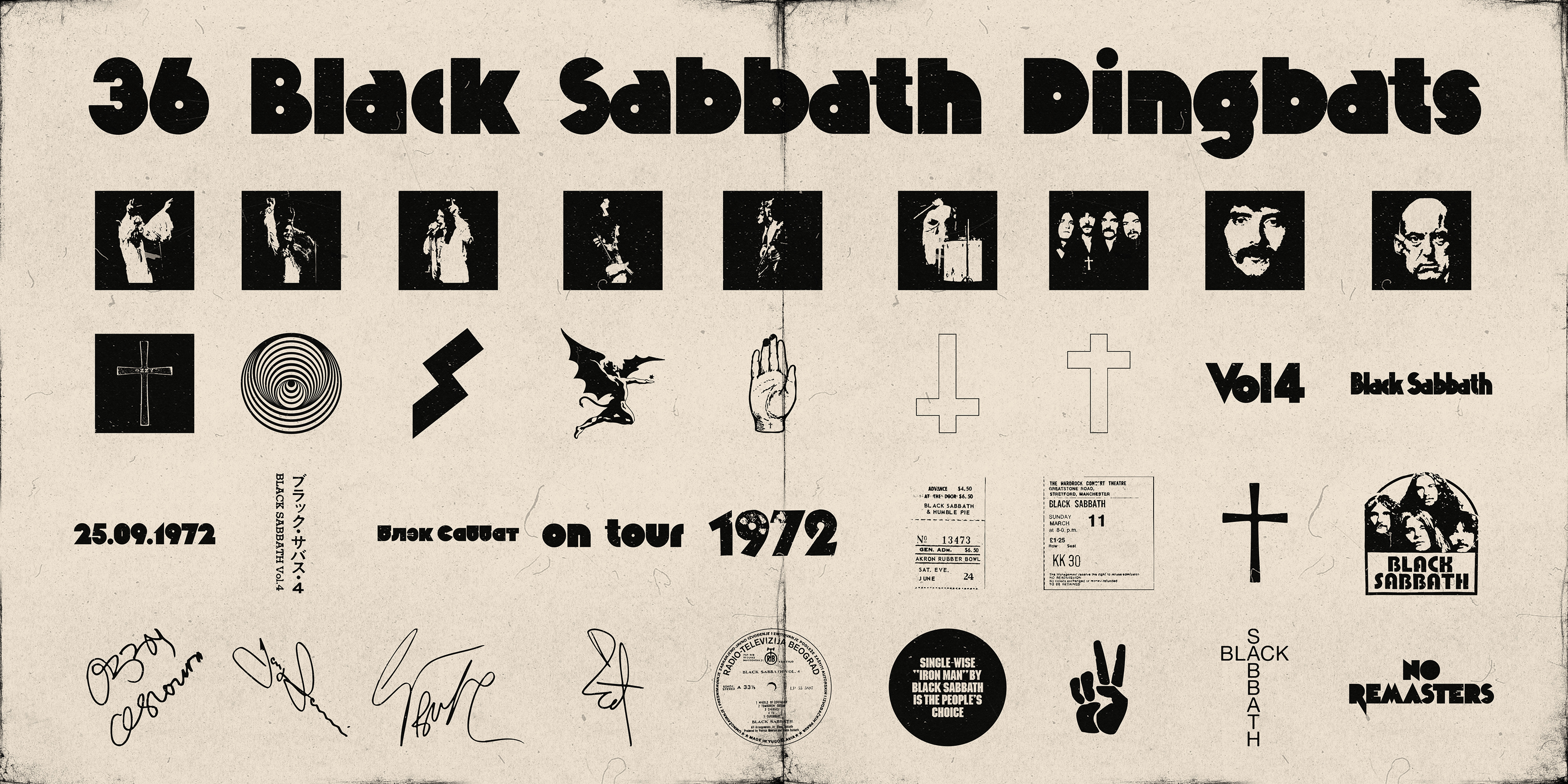 This release brings refined vectors and metrics, a whole new set of alternate characters in line with Volume Rounded and a gift in the form of easter eggs characters and a set of Black Sabbath Dingbats.
