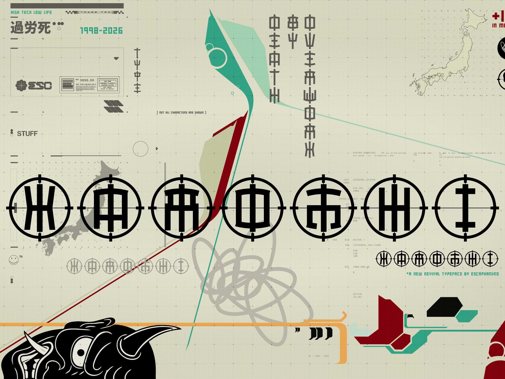 In this new version I tried to make the design less mechanical and included a series of ligatures - 637 with letters and another 57 with numerals. It is indicated for use in titles, letterings and logos. Punctuation and diacritics for Latin languages ββare also included.